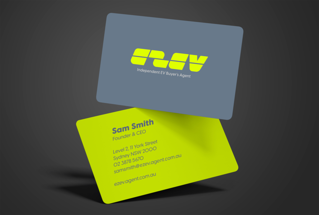 EZEV is an EV buyers agent – helping people cut through the noise of the electric vehicle market to choose the right EV and secure the best price. With a modest budget and a tight timeframe, we were briefed to build the brand from the ground up: create the name, design the logo and visual identity, and bring the brand to life across key applications.